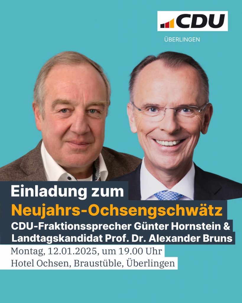 📣Die CDU Überlingen lädt zum traditionellen Neujahrs-Ochsengschwätz mit CDU-Fraktionssprecher Günter Hornstein und Landtagskandidat Prof. Dr. Alexander Bruns ein.